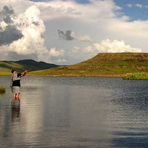 Fly FishingDams, weirs and the Bell river are the fishing grounds for the Wild Trout Association’s (WTA) catchment (catch & release). The rainbow and brown trout grow bigger here due to the cold climate and prime trophy fish are to be caught. Our skilled guides can take you from novice to fisherman in a few days. Skilled fly fishermen use Tiffindell as a base for finding the best spots before the annual WTA’s fishing contest. Fishing rod hire R50 p/hour; Fly fishing: in Tiffindell’s dams, own rod RR100pp/day; in WTA dams and catchment own rod R170pp/day; Fishing guide R120/hour. |